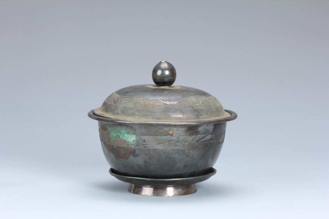 清花卉银盖碗