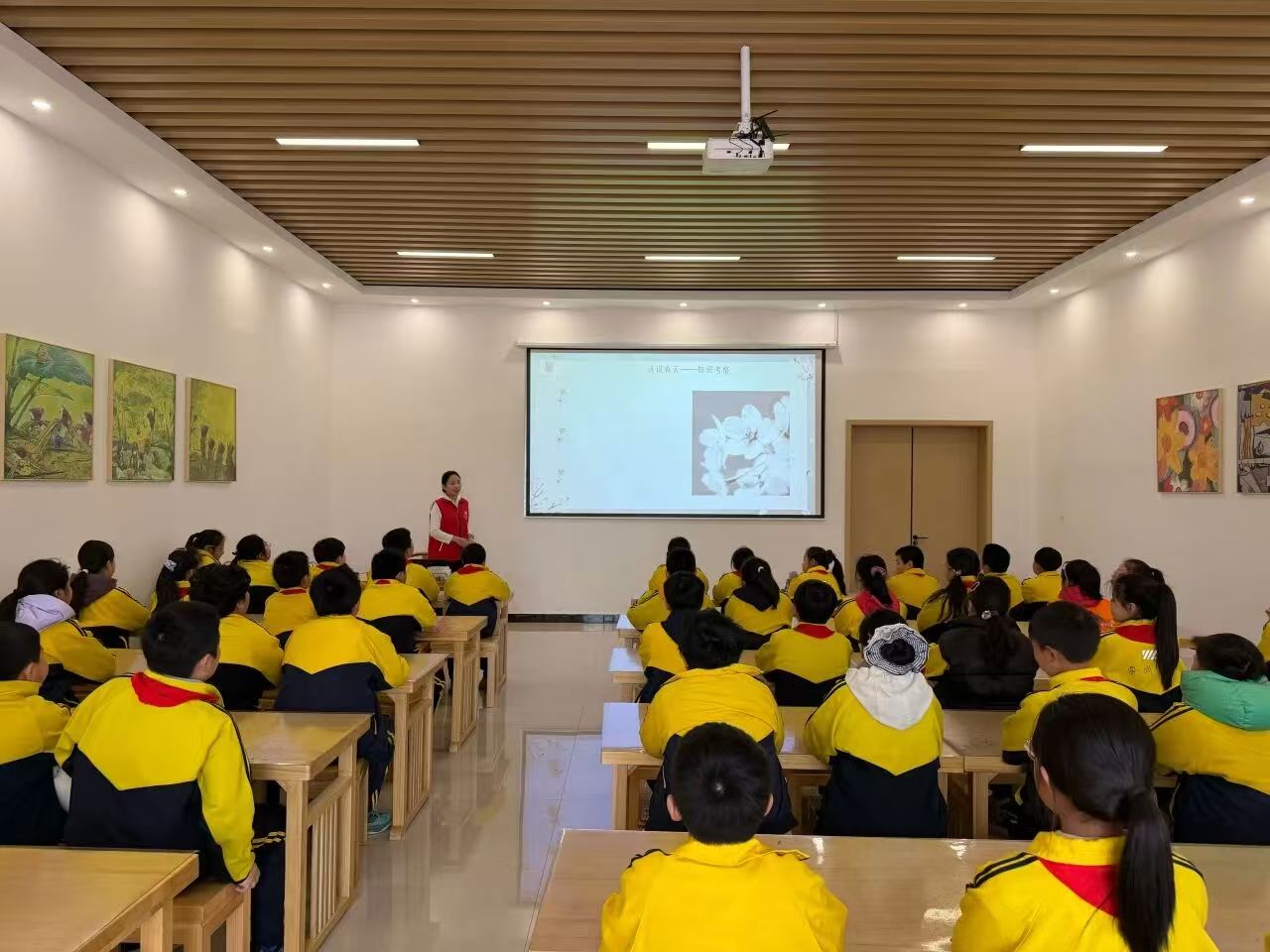 在研学中心,一场生动的春日文化课堂拉开帷幕。社教老师围绕立春、雨水等六个春季节气,讲解了每个节气的民俗内涵与自然节律。随后,师生共同诵读《春晓》《春夜喜雨》等经典古诗词,感悟传统文化的博大精深。课堂最后,老师带领同学们赏析了中陈郝窑瓷器在宋金元时期流行的白釉黑花纹饰,引导大家感受器物上构图自然、运笔洒脱的纹饰之美,进一步感受本土传统工艺的深厚底蕴。