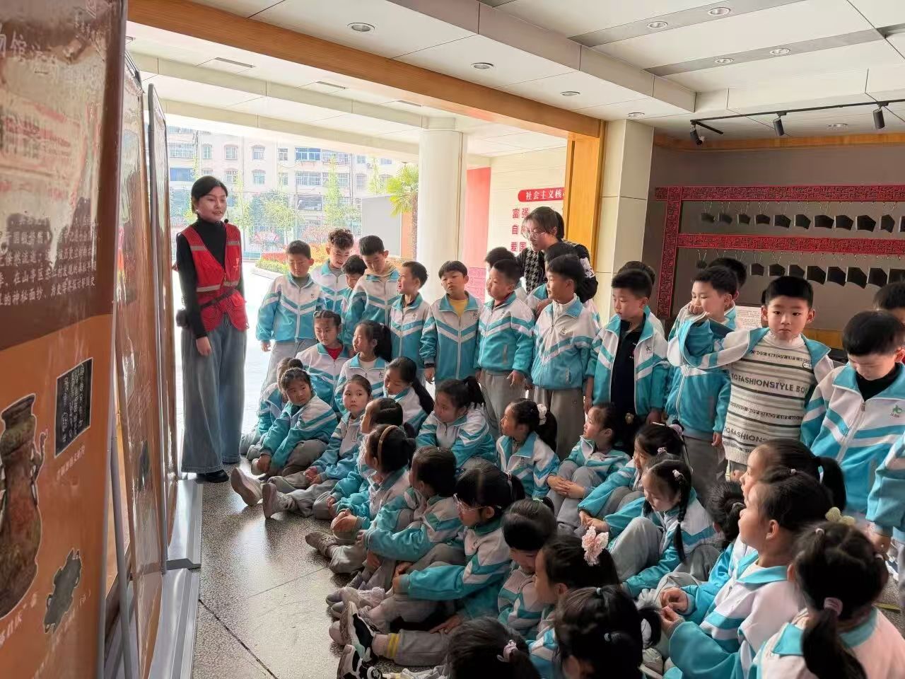 “枣博π课堂”让流动展览走进校园,宣教团队结合学生年级特点,精选枣庄出土文物主题展板,由讲解员为师生讲解文物背后的历史、工艺与文化价值,增强青少年对家乡文化的认同与自豪。