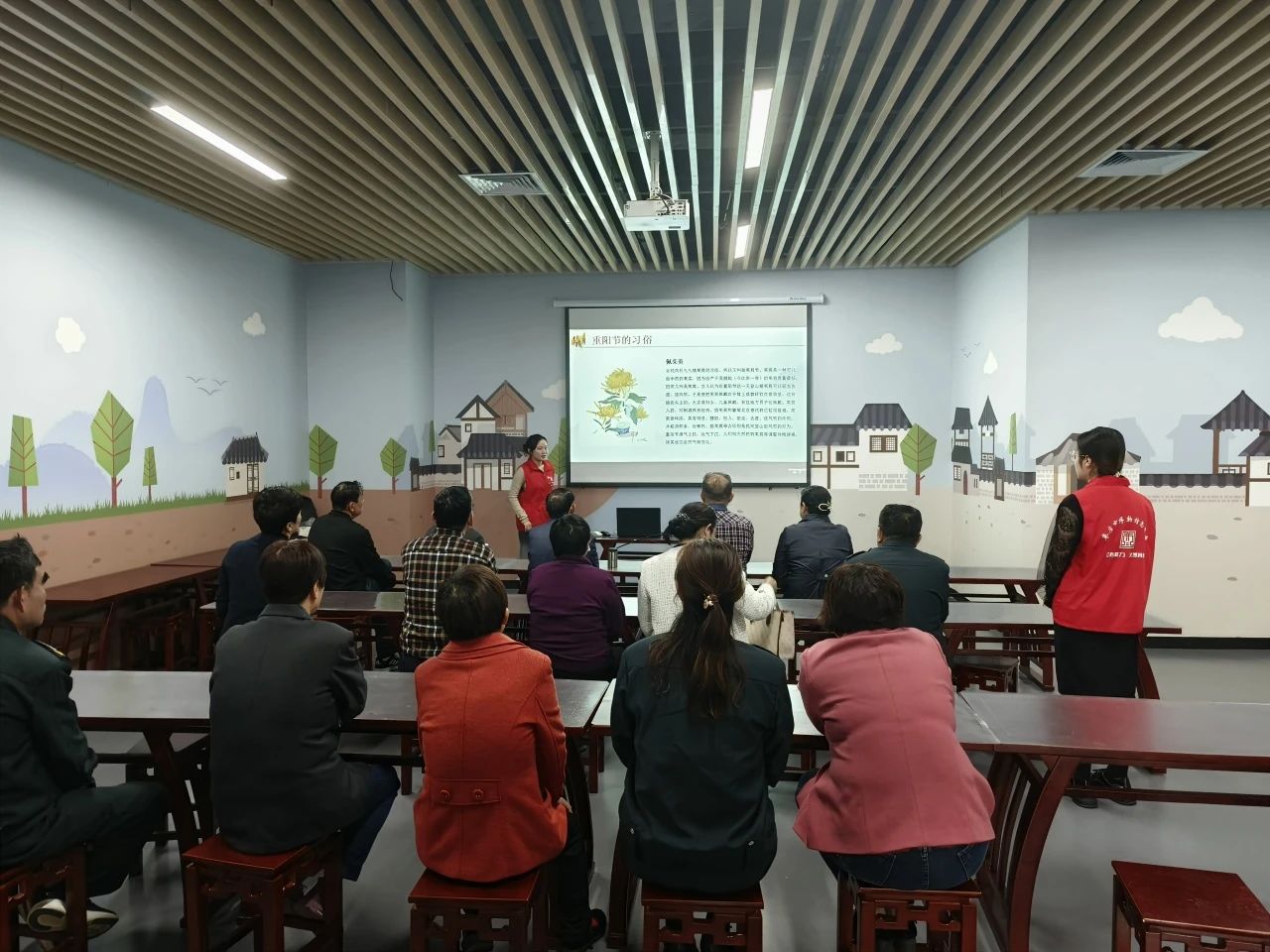 随后,社教老师通过PPT进行了一场简短的重阳节知识科普及反诈知识宣讲,大家聚精会神地听着,踊跃地表达着内心的想法,现场氛围欢快而热烈。
