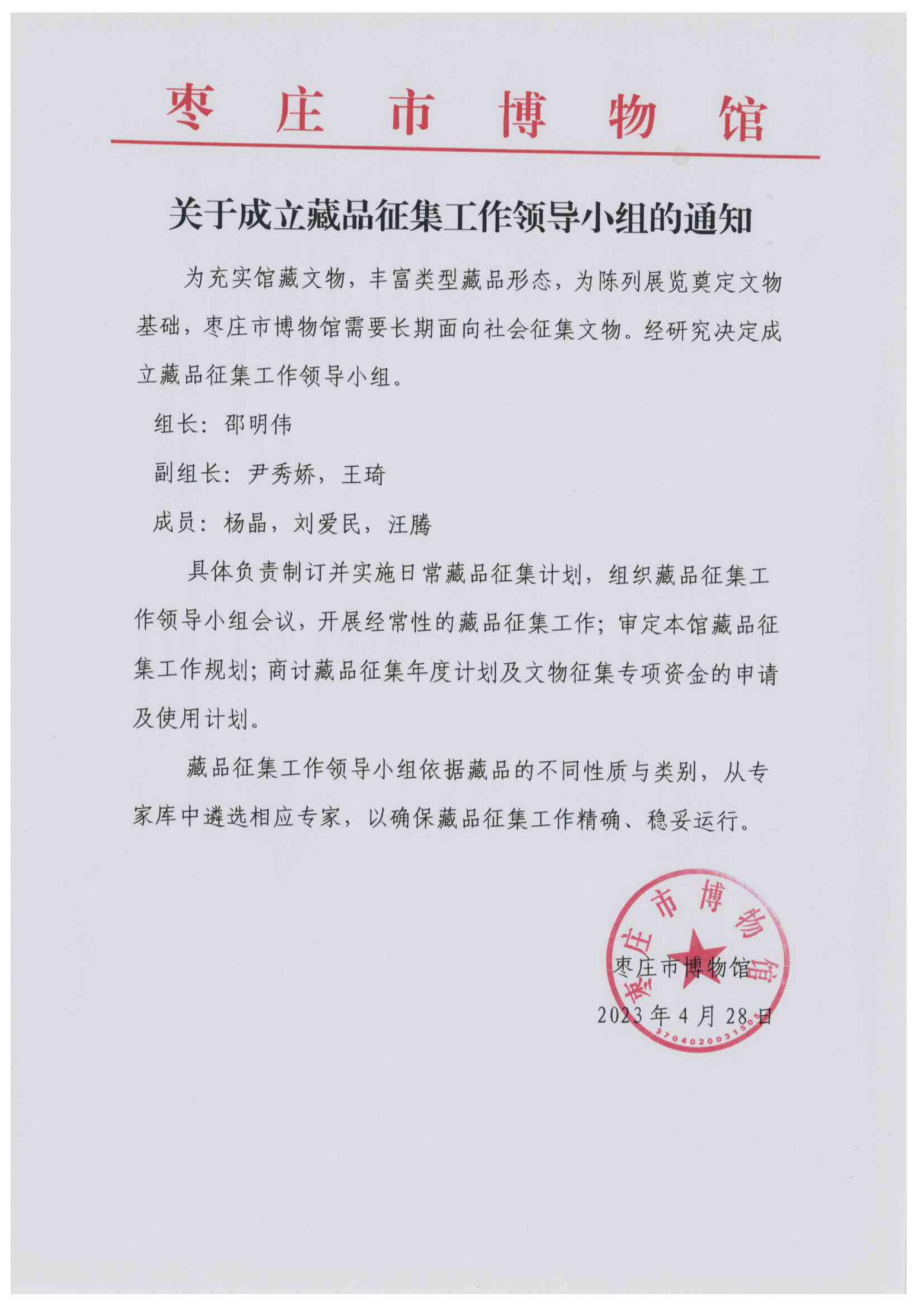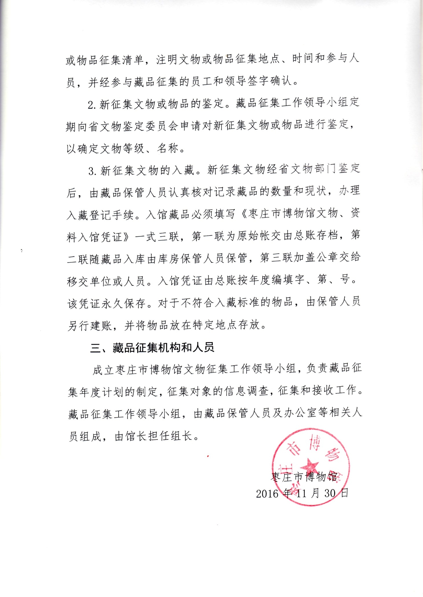 枣庄市博物馆藏品入藏标准和征集