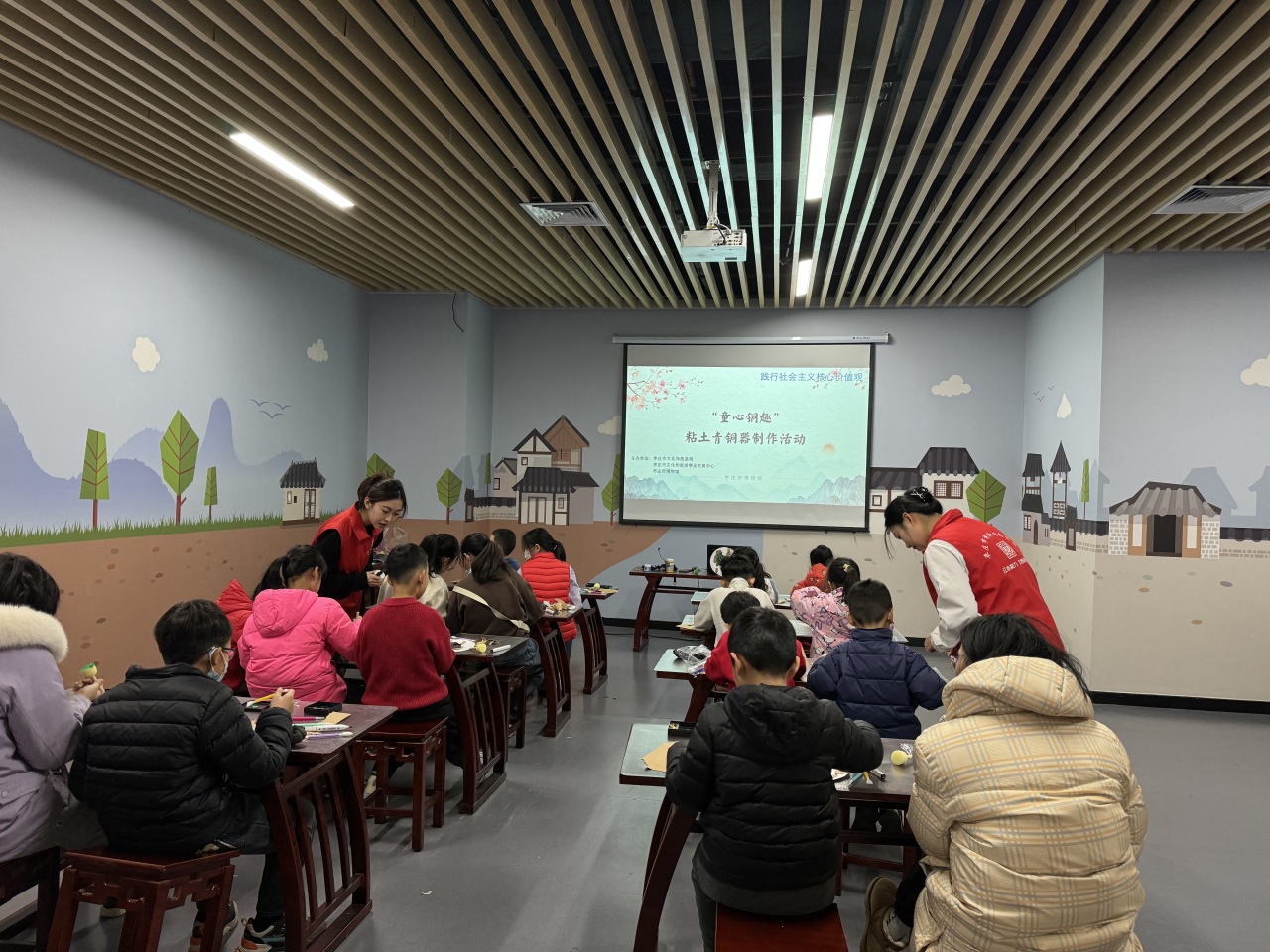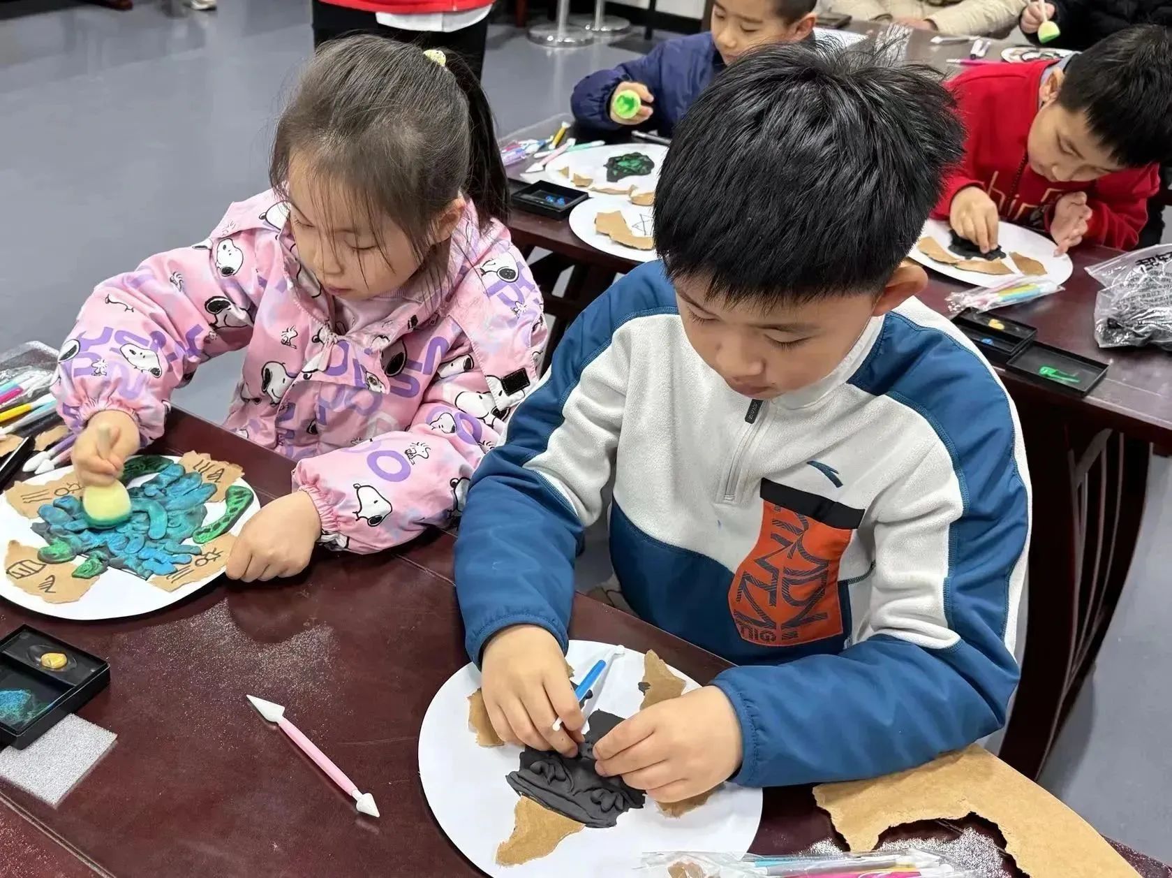 描边勾线、搓泥塑形、雕刻纹理、粉刷色料,对于孩子们来说,创新创造易如反掌。沉浸式手工体验“复刻”文物,加深了他们对青铜文化的了解,激发了他们学习历史文化的浓厚兴趣。