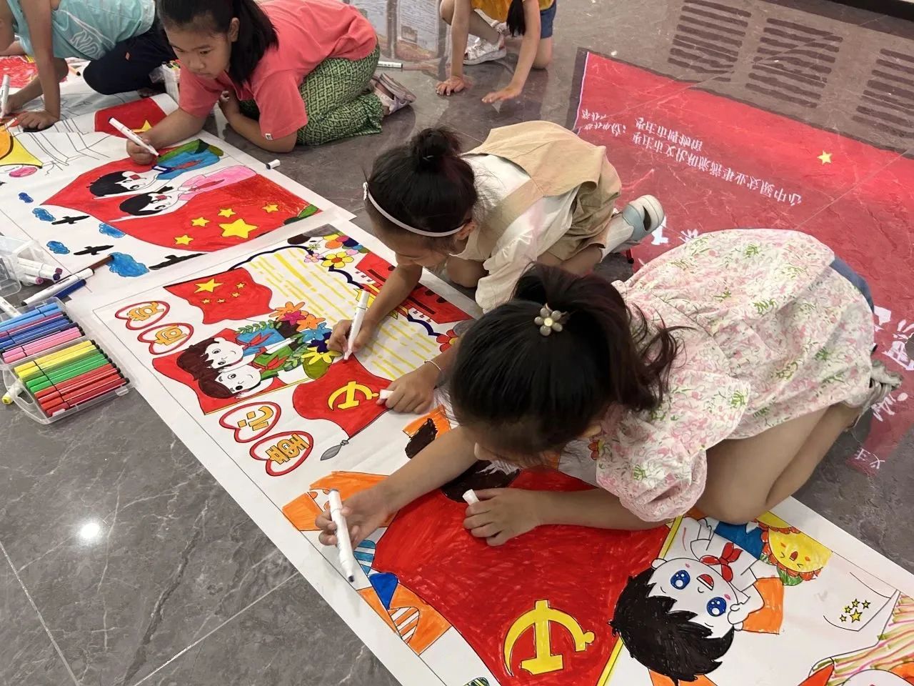 为贯彻落实党的二十大精神,弘扬党的光辉历程和丰功伟绩,团结引领广大青少年坚定跟党走、建功新时代,厚植爱党、爱国、爱社会主义的情感,让红色基因、革命薪火代代传承,7月9日,枣庄市文化和旅游事业发展中心、枣庄市博物馆联合举办了“童心向党少年强  十米长卷颂党恩”绘画活动,让孩子们用五彩斑斓的画卷向伟大的党伟大的祖国致敬。