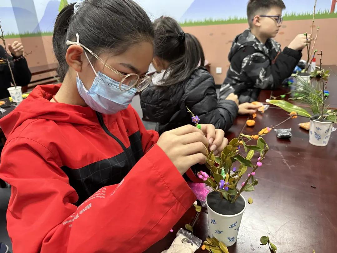 拥有一些想法后,同学们迫不及待地开始使用粘土、树枝、树叶制作手工立体树。在制作过程中,同学们发挥想象力,将树叶、树枝巧妙地组合在一起,创造出了各具特色的作品。