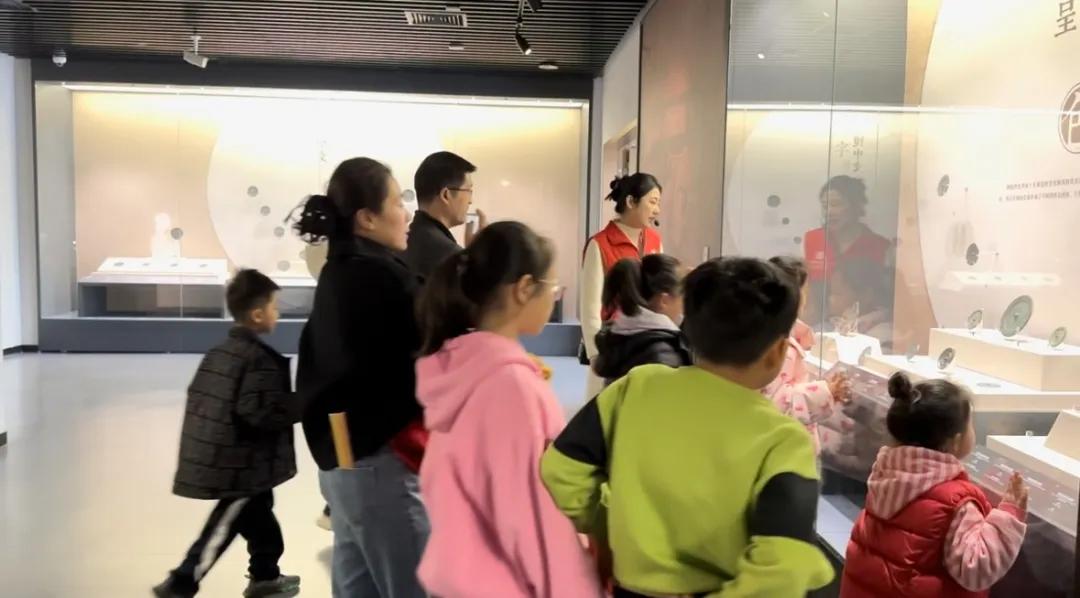 “铜镜,也被称为铜鉴,因古代用铜做镜子而得名。铜镜在古代有着悠久的历史,从最早的商代作为祭祀礼器出现,到春秋战国至秦时期,它主要被贵族所享用。随着时间的推移,到西汉末期,铜镜逐渐走入民间,成为人们生活中不可或缺的一部分。”社教老师先是通过课件将铜镜的历史向大家娓娓道来,一幅幅古人浪漫而热烈的生活图景展现在小朋友们的眼前。