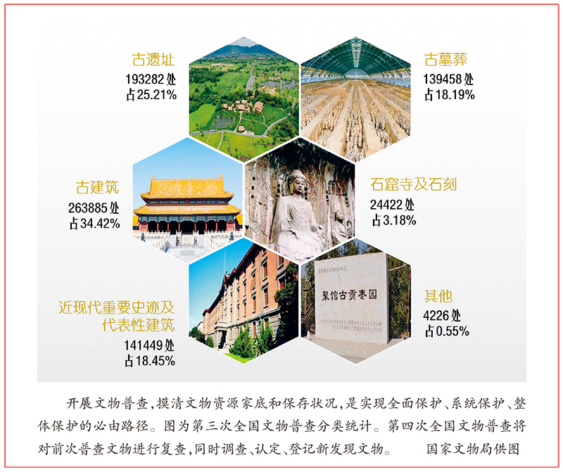 构建文化遗产大保护格局,对文物系统性保护提出了新的更高要求。作为物质文化遗产保护的“重中之重”,新时代文物保护正在从重点保护向全面保护、系统保护、整体保护转变。我国分别于1956年、1981年、2007年开始开展过三次全国文物普查。今年的《政府工作报告》提出:“开展第四次全国文物普查,加强文物系统性保护和合理利用。”当前,按照新时代加强文物和文化遗产系统性保护工作要求推进的第四次全国文物普查,采取了一系列新举措:践行应保尽保,将1911年以前的古建筑、古文化遗址、古墓葬、石窟寺及石刻全部纳入普查和认定范围;丰富文物内涵,将六大类59项文物类别细化扩展为63项,首次明确将文化景观纳入普查对象;推动系统保护,将开展不可移动文物认定、登记和公布列为主要任务,把普查成果作为各行业名录公布的基础,为构建以文物资源为核心的历史文化遗产保护体系提供有力支撑。