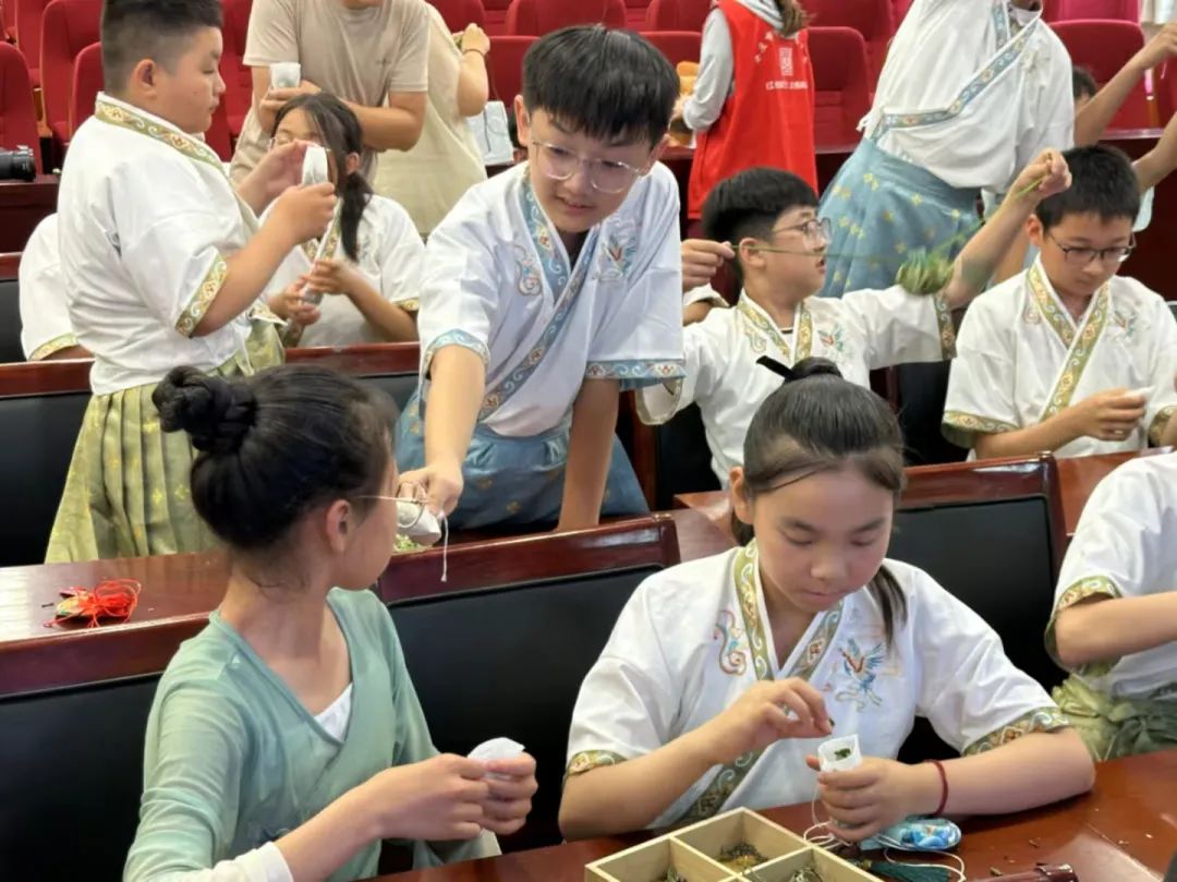 在报告厅,社教老师为六年级(1)班的同学们带来了一场妙趣横生的“香韵馆藏 指尖芬芳”香囊制作体验课。