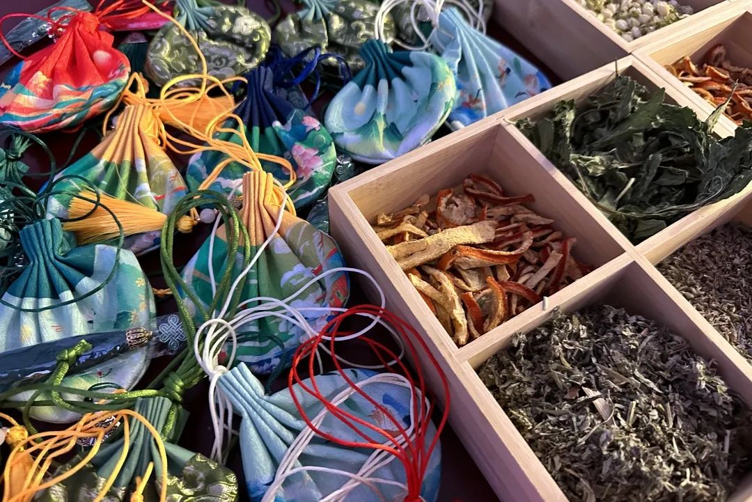 随后的香囊制作体验环节,社教老师耐心细致地为大家讲解了香囊的制作方法和材料选用。从香料的选择到香囊的装填,社教老师对每一个步骤都进行了详细介绍和示范。同学们认真聆听,踊跃尝试,通过小组互动的形式,亲手制作香囊,感受传统文化的魅力,传承华夏文明。