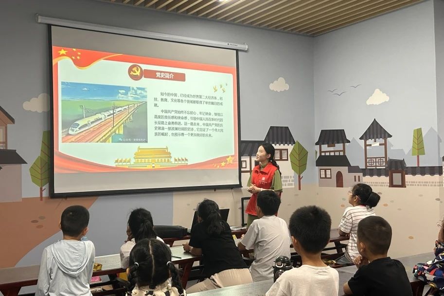 社教老师首先向同学们讲述党的历史和《红船的故事》《衣冠冢的秘密》等红色故事,让同学们进一步了解党的光辉历程和伟大成就,感受如今生活的来之不易。同学们纷纷表示,作为新时代的青少年,要学习历史、牢记历史,把红色革命精神扎根在心中,倍加珍惜今天的幸福生活。