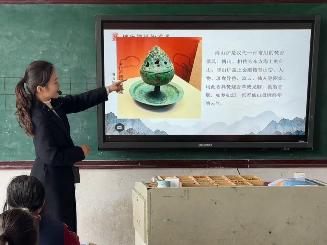 3月5日下午,枣庄市博物馆走进峄城区传开希望小学开展以“传承雷锋精神 点亮文化之光”为主题的“联百校 润童心”课桌上的博物馆活动。此次活动旨在打破传统课堂的局限,以更加生动、直观的方式,为同学们提供一堂生动的历史文化课程,让同学们能够感受家乡的历史文化,激发他们的民族自信心和自豪感。 活动伊始,以《香韵馆藏 指尖芬芳》主题课程拉开了序幕,社教老师通过视频和课件为同学们介绍了中国的香文化和枣庄市博物馆部分馆藏香具,激发了同学们对枣庄历史文化的求知欲。香囊制作的手工环节将课堂气氛推向高潮。社教老师带领学生认识了各种香料,并分发制作香囊的材料,随后指导学生制作香囊,充分调动了学生的积极性。 本次活动还包括特色展板走进校园环节。枣庄市博物馆展板以图文并茂的形式,生动展示了从新石器时代到明清时期悠久的枣庄历史文化,在社教老师的精彩解说下,学生们仿佛置身博物馆,足不出校便深入领略了枣庄地域文化的独特魅力。 为了让更优质的资源抵达基层,枣庄市博物馆致力于面向更广泛的社会群体策划各类有温度、有意义的活动。此次活动是枣庄市博物馆“联百校 润童心”系列活动的重要一环,让学生不出学校就可以了解家乡历史。