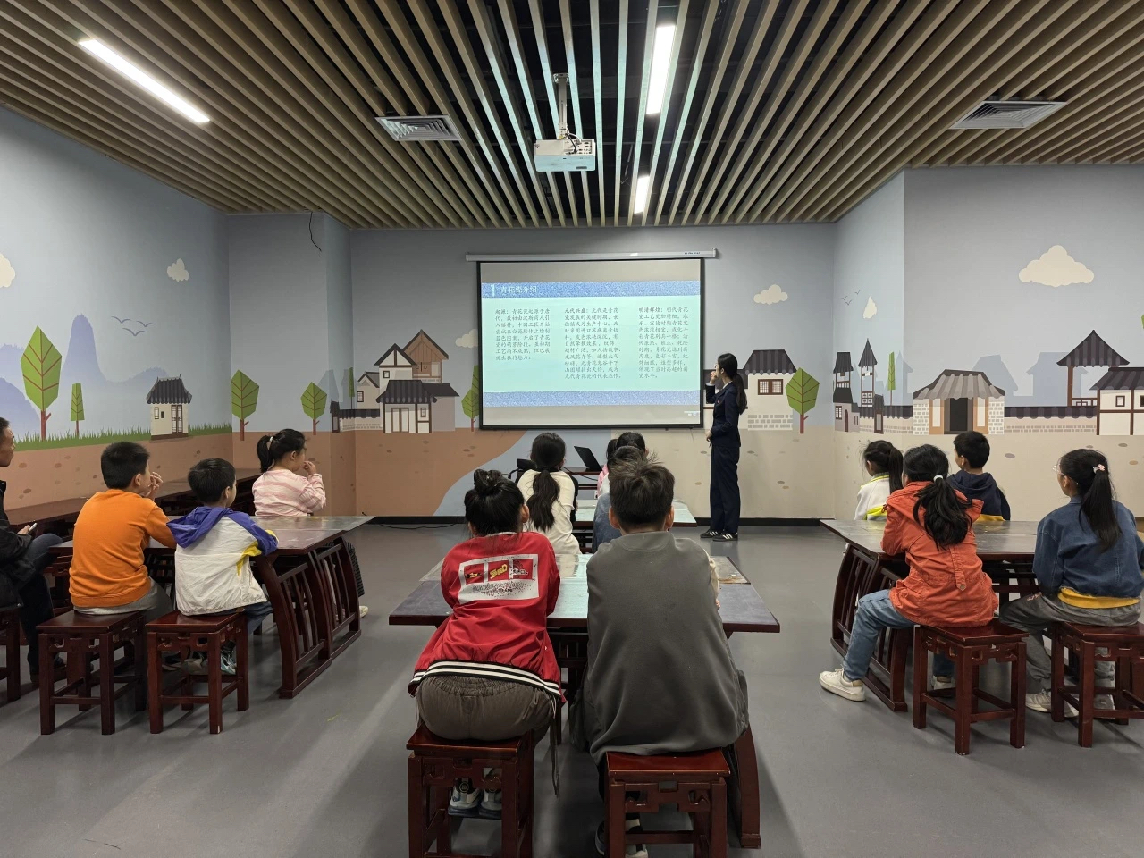 社教老师首先为大家详细介绍青花瓷的历史。从青花瓷的起源,到在不同朝代的发展演变,每一个阶段都有着独特的故事。大家了解到青花瓷如何从萌芽走向成熟,在元代达到一个高峰,又在明清时期绽放出更加绚烂的光彩。同时,社教老师还深入讲解了青花瓷的艺术特色,其独特的青花纹饰,或细腻描绘花鸟鱼虫,或大气展现山水人物,每一笔都蕴含着古人的智慧与审美。通过一件件精美的青花瓷展品,大家仿佛穿越时空,与历史对话。