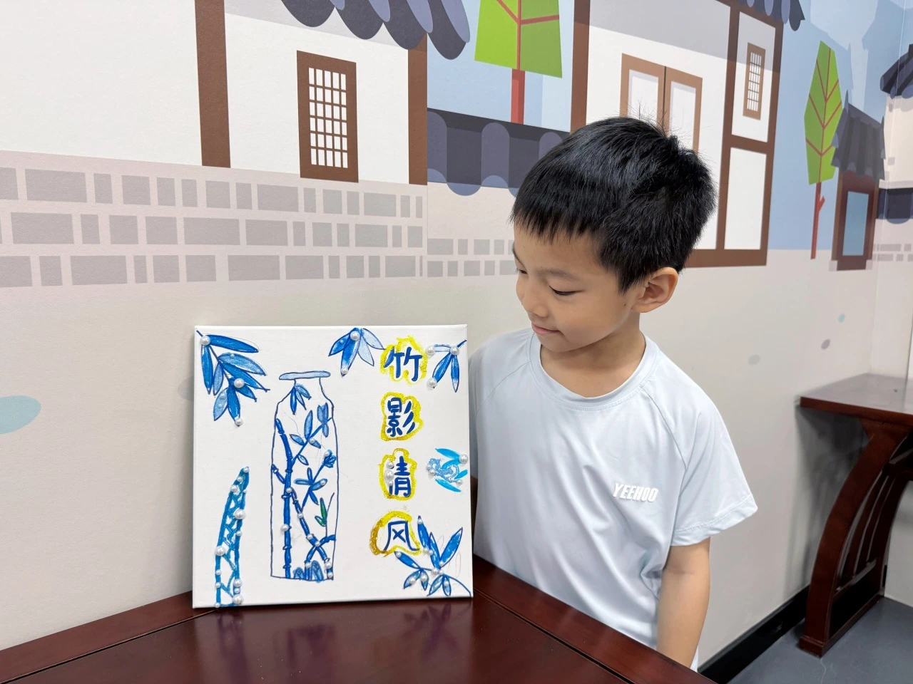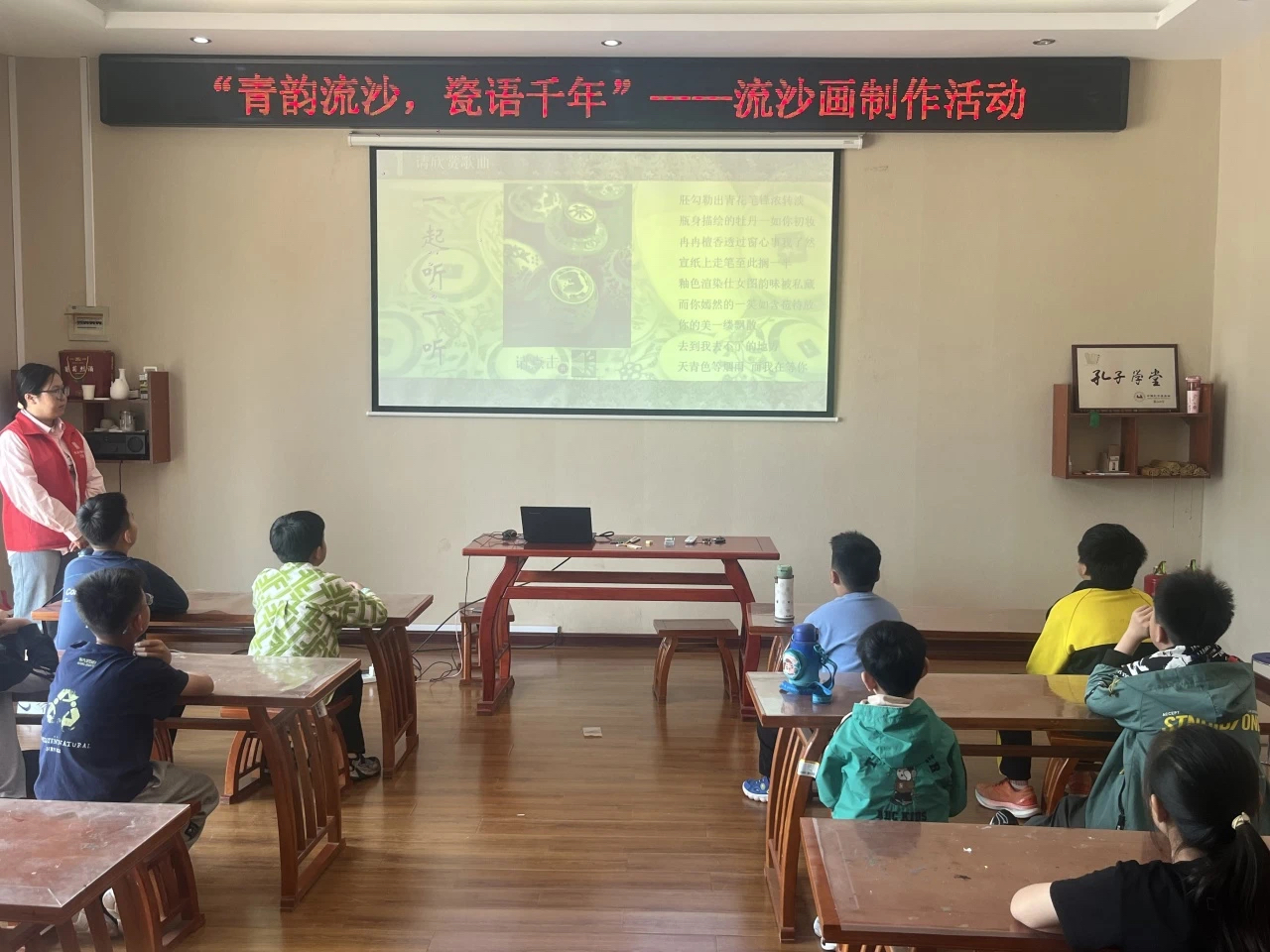 在了解了青花瓷的相关知识后,进入了充满趣味的青花瓷沙画制作环节。参与者们纷纷发挥自己的创意,用彩笔、颜料在画板上创作出心中的青花瓷图案,再加以珍珠、彩沙进行装饰。