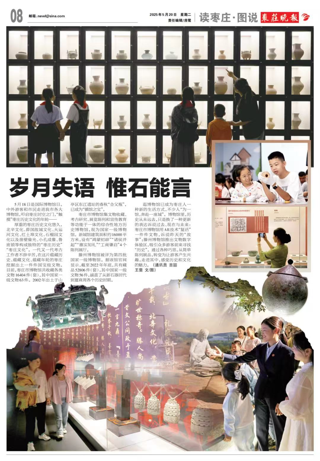 上半年,枣庄市博物馆坚持以习近平新时代中国特色社会主义思想为指导,深入学习贯彻党的二十大和二十届二中、三中全会精神,在市文旅局党组和文旅中心党委的坚强领导下,紧紧围绕年度重点工作任务,持续在文化服务质量提升上下功夫,展陈质量持续提高,社教活动类型不断丰富,文化服务形式更加多样,文物安全工作更加坚实,服务观众22.6万人次。我馆被评为枣庄市“大思政课”实践基地,枣庄市博物馆党支部被评为市直机关“四强”党支部,“联百校·润童心”课桌上的博物馆荣获首批市级志愿服务示范项目库入库项目、枣庄市最佳社会工作案例、第六届全省博物馆社会教育优秀案例,谱写文旅高质量发展新篇章。