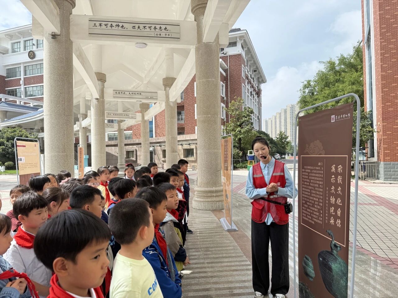 活动现场,博物馆工作人员先将精心设计的流动展板在校园走廊依次铺开,展板以图文并茂的形式,清晰呈现了枣庄地区出土青铜器的年代脉络、系统呈现了当地出土青铜器的器型特征、纹饰寓意与历史背景,系统呈现了当地出土青铜器的器型特征、纹饰寓意与历史背景,为学生搭建起直观了解本土历史文化的窗口。