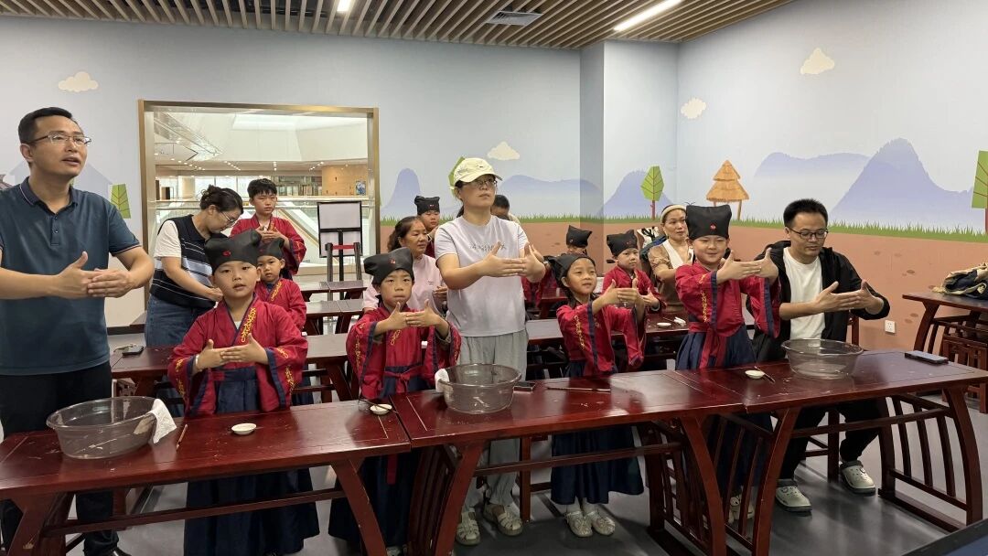 社教老师首先为亲子家庭生动讲解了古滕国的历史,并通过观看《滕文公问政》视频,引导大家深入了解春秋战国时期的礼仪规范与治国思想。随后,孩子们在老师的指导下,与父母一同庄重完成了正衣冠、行拜师礼等开蒙仪式。本次活动通过沉浸式体验,成功地将传统礼仪的文化内涵转化为生动的人生课堂,让孩子们在古朴的仪式中树立“善”“正”的行为规范,为他们的成长播下了尊师重道、仁爱处世的文化种子。但这也不仅仅是一次深刻的文化体验,更是一次重要的精神洗礼,正如习近平总书记所指出的,“礼仪是宣示价值观、教化人民的有效方式”。