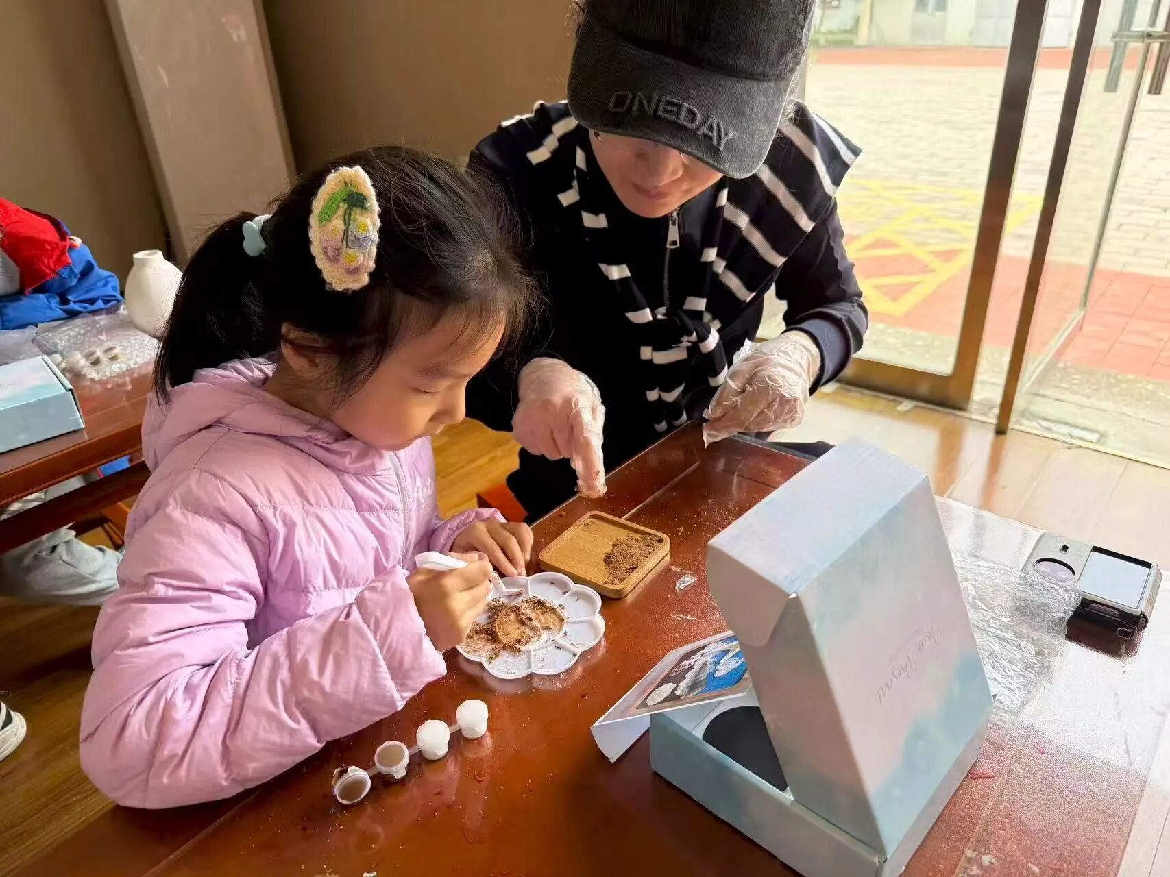 实践环节,社教老师重点讲述了肌理塑造与冰箱贴基础固定技巧。学生们积极动手,通过独特色彩搭配与肌理塑造创作专属冰箱贴。这些作品不仅是装饰品,更承载着学生们的情感与温度。