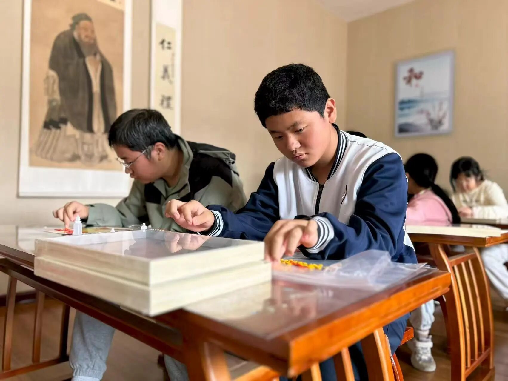 国庆期间,枣庄市博物馆开展了“国庆纽扣缘 共融民族心”纽扣画制作活动,众多青少年齐聚一堂,用创意与温情编织家国祝福。