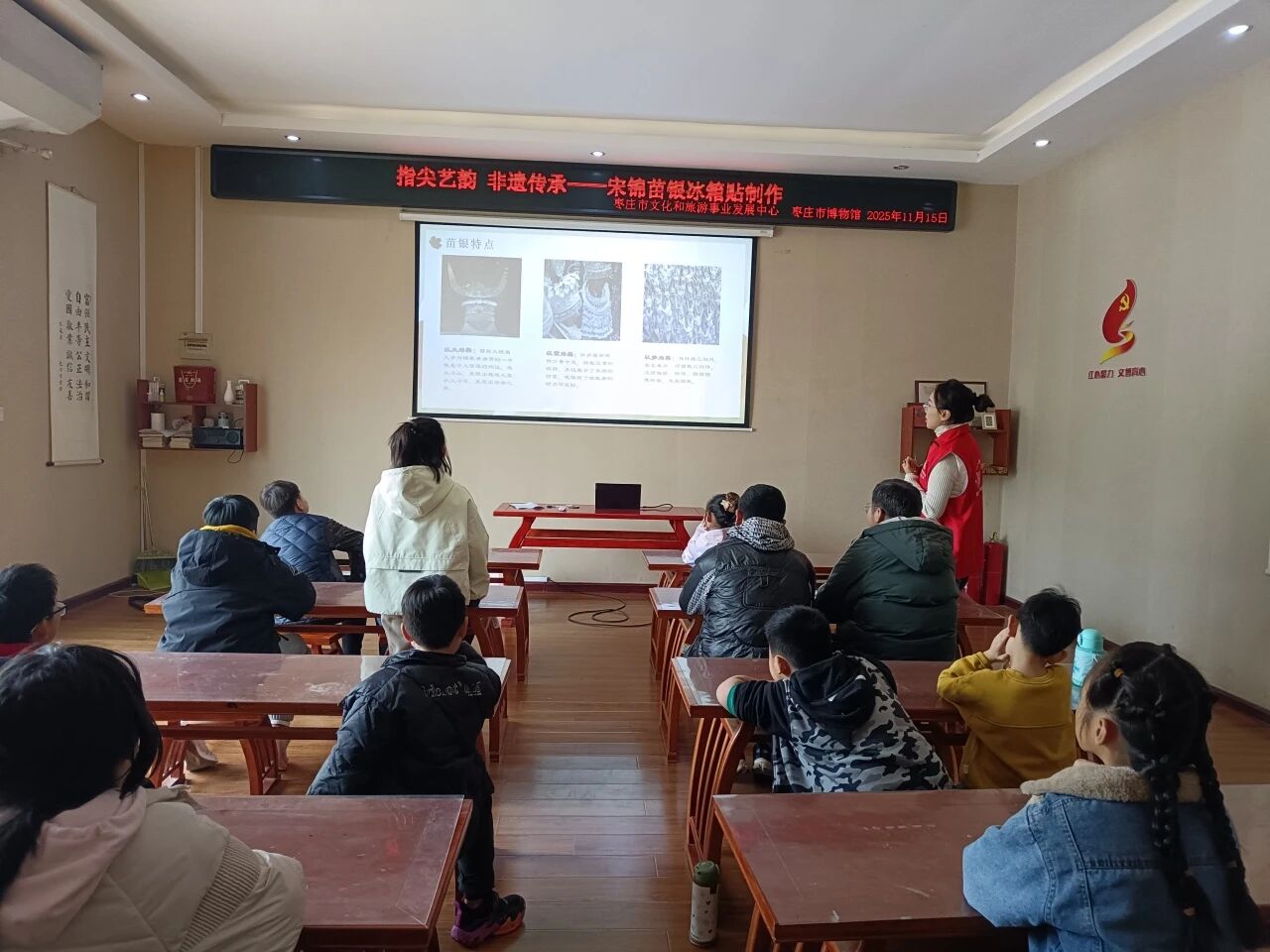 为传承中华优秀传统文化,让青少年儿童沉浸式感受非物质文化遗产的独特魅力,枣庄市文化和旅游事业发展中心与枣庄市博物馆联合举办了“指尖艺韵 非遗传承——宋锦苗银冰箱贴制作活动”为青少年搭建起非遗文化体验的桥梁。