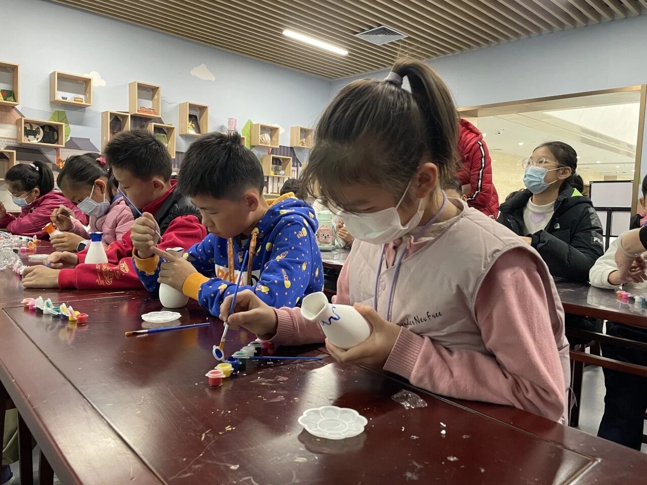 手工创作环节中,小朋友们发挥创意,在白色瓷坯上勾勒多样图案,用色彩诠释对瓷器艺术的理解,沉浸式体验瓷器绘画的乐趣。