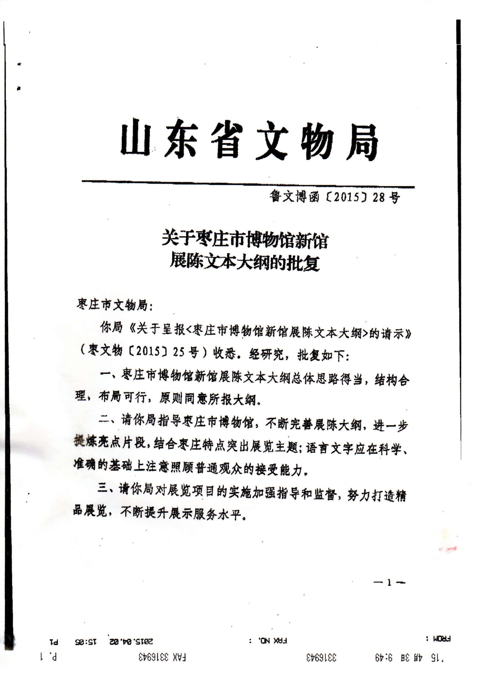 新馆展陈文本大纲批复文件