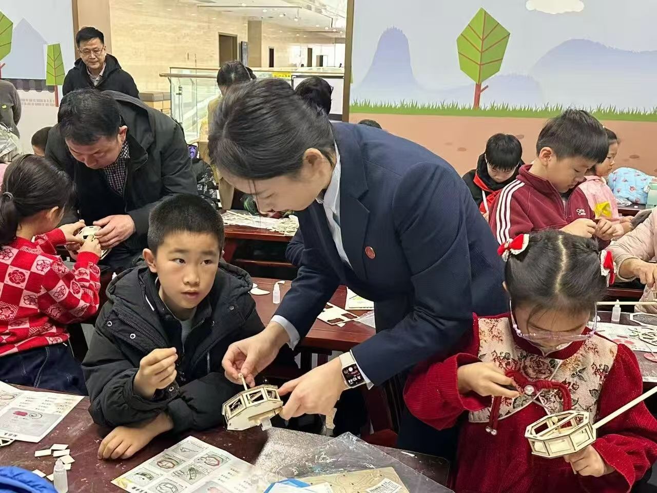 手工环节,在社教老师的耐心讲解、细致指导下,孩子们专注组装、拼贴,制作出一盏盏灵动雅致的风车花灯。大家在创作中感受手工艺之美,将元宵的浪漫与美好定格,让传统文化在指尖传承。