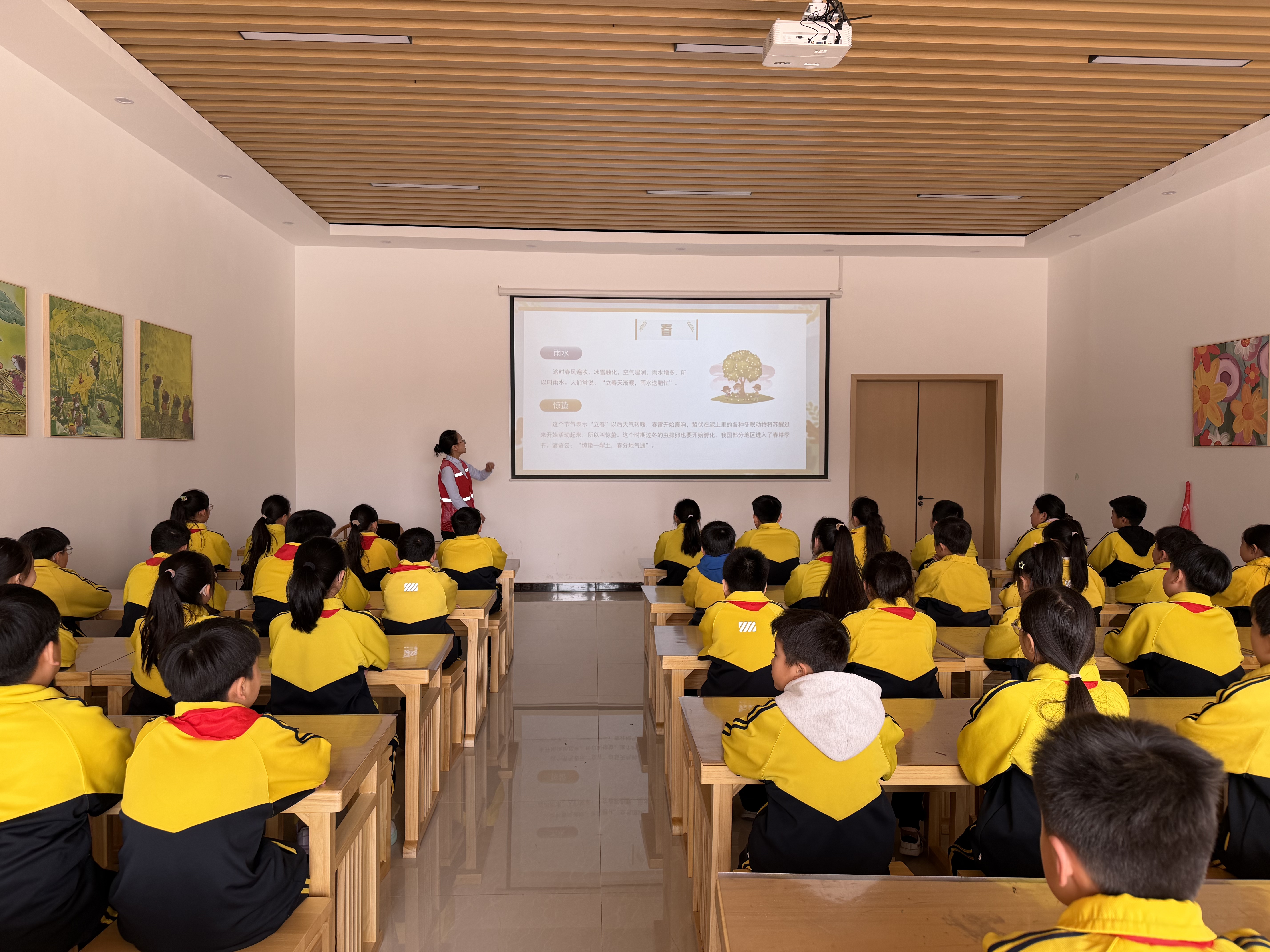 课堂上,老师带领同学们重温二十四节气歌,讲解春季节气的由来与内涵,同时为同学们科普了植树节的由来与意义,理解植绿护绿的重要性,清代诗人高鼎的《村居》更是将大家带入春日放鸢的美好意境。