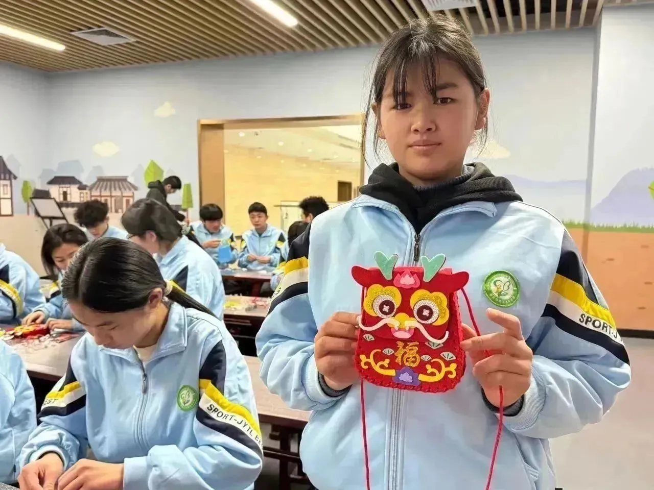 随后,孩子们在社教老师的帮助下亲手制作了印有卡通龙图案的斜挎包。通过缝制、粘贴等步骤,大家都精心制作出了属于自己的作品。他们们洋溢着开心的笑容,争先恐后地展示着成果。