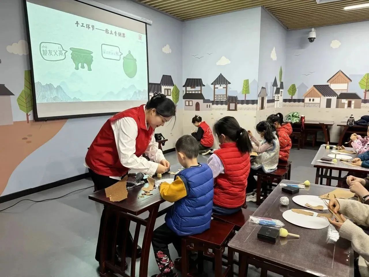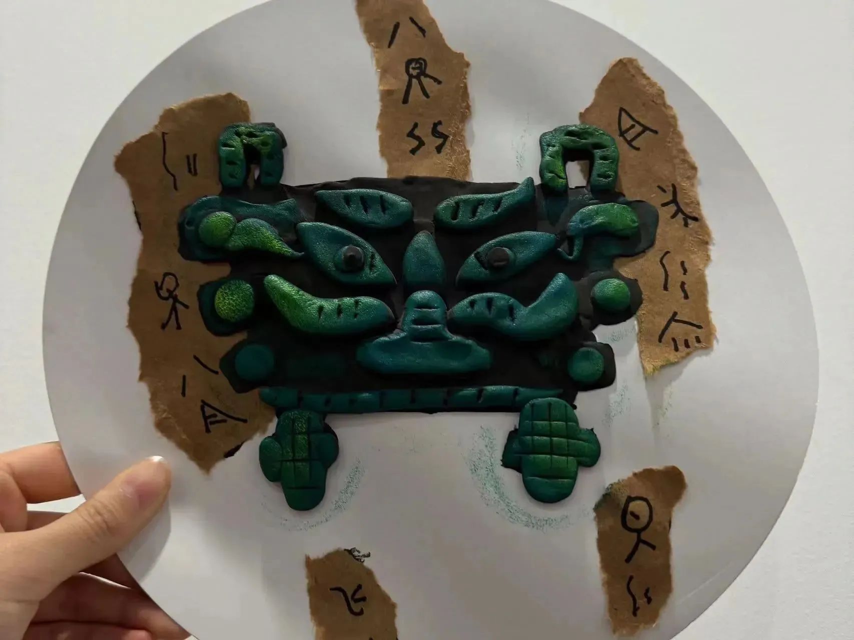 描边勾线、搓泥塑形、雕刻纹理、粉刷色料,对于孩子们来说,创新创造易如反掌。沉浸式手工体验“复刻”文物,加深了他们对青铜文化的了解,激发了他们学习历史文化的浓厚兴趣。