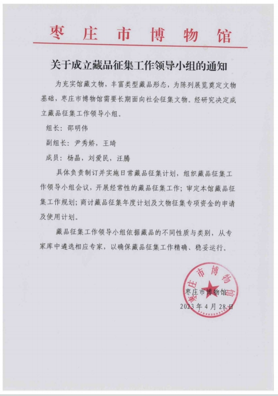 枣庄市博物馆关于成立藏品征集工作领导小组的通知.pdf