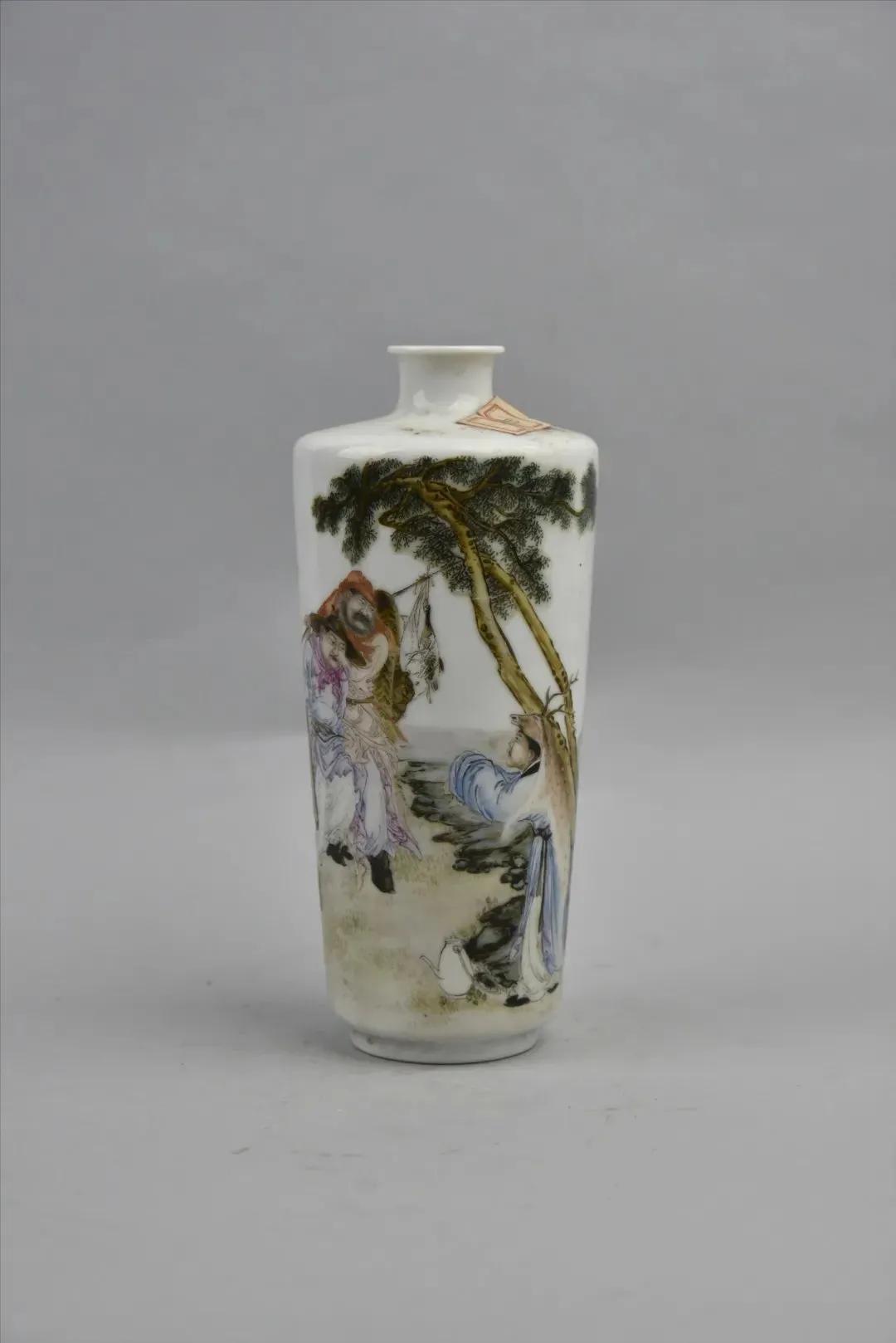 民国·浅绛彩鹿乳奉亲图棒槌瓶