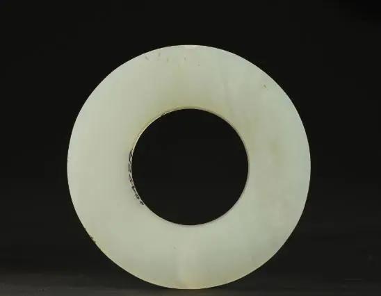 汉白玉壁,直径5.9厘米,内径2.9厘米,厚0.5厘米,2008年滕州市寨山汉墓群出土,现收藏于枣庄市博物馆。圆形,断面长方形,质地细腻,半透明状,制作精细,磨制光滑。玉璧除用于礼瑞、朝聘、祭祀、殓葬之外,也作装饰的佩玉,系带于腰间,或悬挂于胸前。