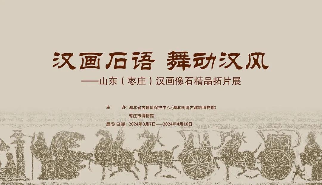 由枣庄市博物馆、湖北明清古建筑博物馆联合主办的《汉画石语 舞动汉风——山东“枣庄”汉画像石精品拓片展》将于2024年3月7日—4月16日在湖北明清古建筑博物馆陈献甲宗堂展厅正式展出。