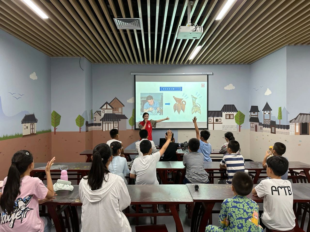 “文物修复和给病人看病一样,需要‘望闻问切’,量身定制适合它的‘处方’。”在观看了《我在故宫修文物》片段后,社教老师为孩子们介绍了文物背后的故事和文物修复工作的真谛,并通过图片让同学们认识了文物修复师的工作日常。
