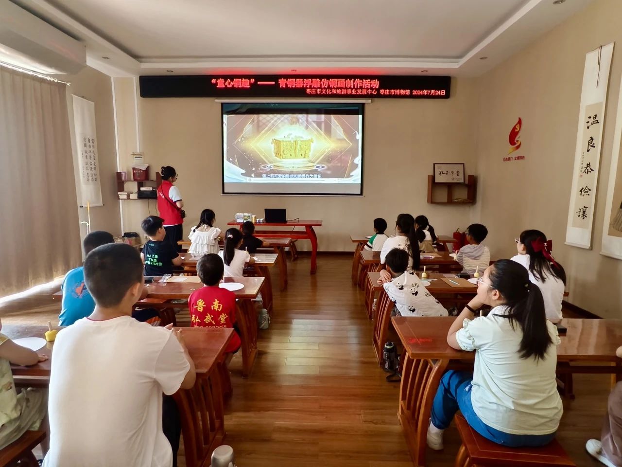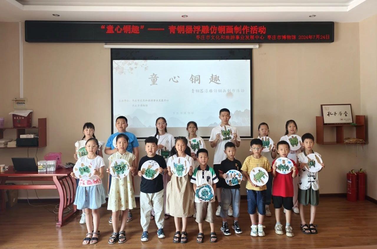 为弘扬中华优秀传统文化,加深青少年对博物馆藏品的认识和理解,让孩子们的暑假生活更加丰富多彩,7月24日,枣庄市文化和旅游事业发展中心、枣庄市博物馆举办了“童心铜趣”青铜器浮雕仿铜画制作活动。