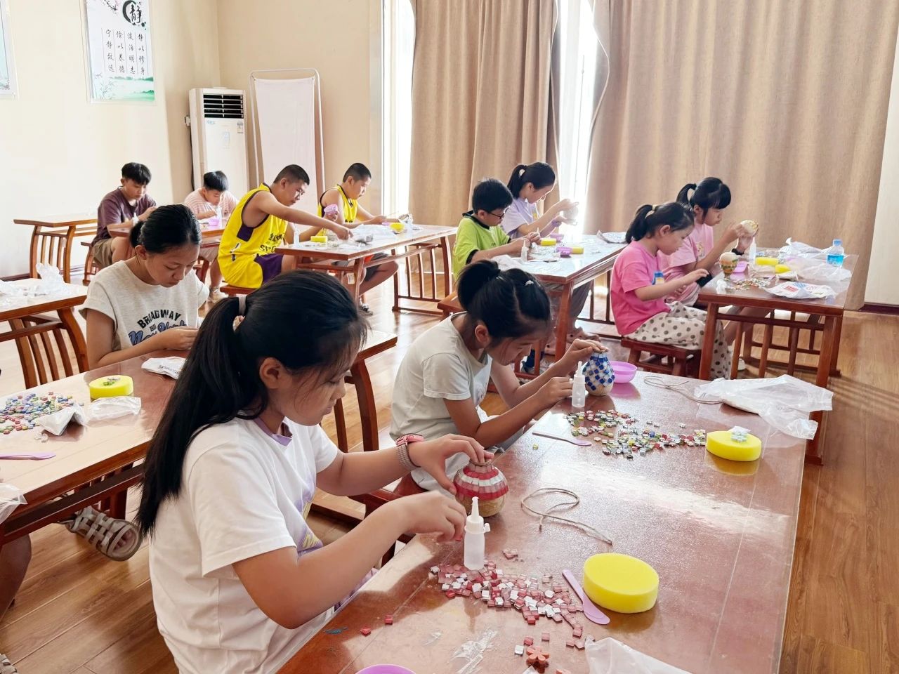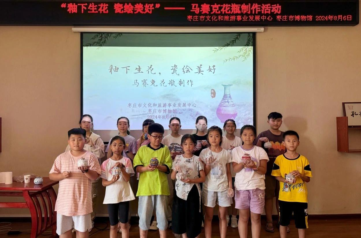 为弘扬中华优秀传统文化,丰富青少年暑期文化生活,增强其动手实践能力,8月6日,枣庄市文化和旅游事业发展中心、枣庄市博物馆开展“釉下生花 瓷绘美好”—马赛克花瓶制作活动。