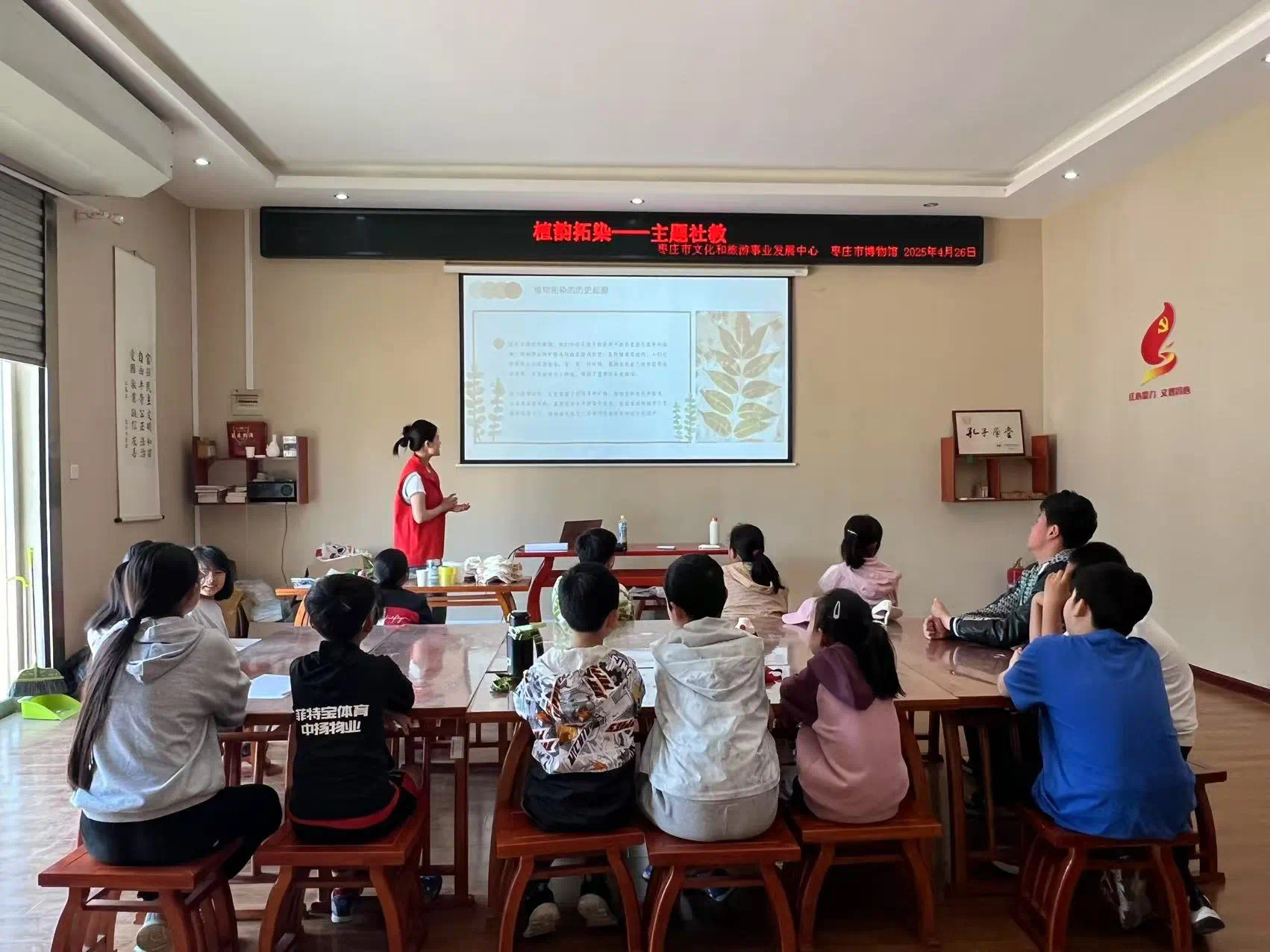 在枣庄市博物馆(西馆区)的社教活动室,一场以 “植韵拓染” 为主题的研学活动于4月26日下午如期举行。