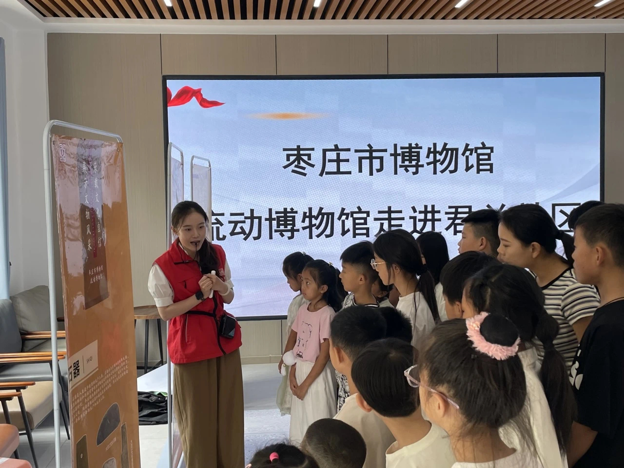 为进一步深入贯彻落实习近平总书记关于妇女儿童和妇联工作重要论述,落实立德树人根本任务,帮助广大儿童度过一个思想有引领、家教有指导、安全有守护、困难有帮扶的快乐假期。2025年7月10日,枣庄市博物馆积极参与市妇联、关工委举办的暑期儿童关爱活动,流动博物馆进社区,为孩子们带来了一场知识与趣味交融的盛宴,让孩子们在社区中便能领略到中华传统文化的博大精深。