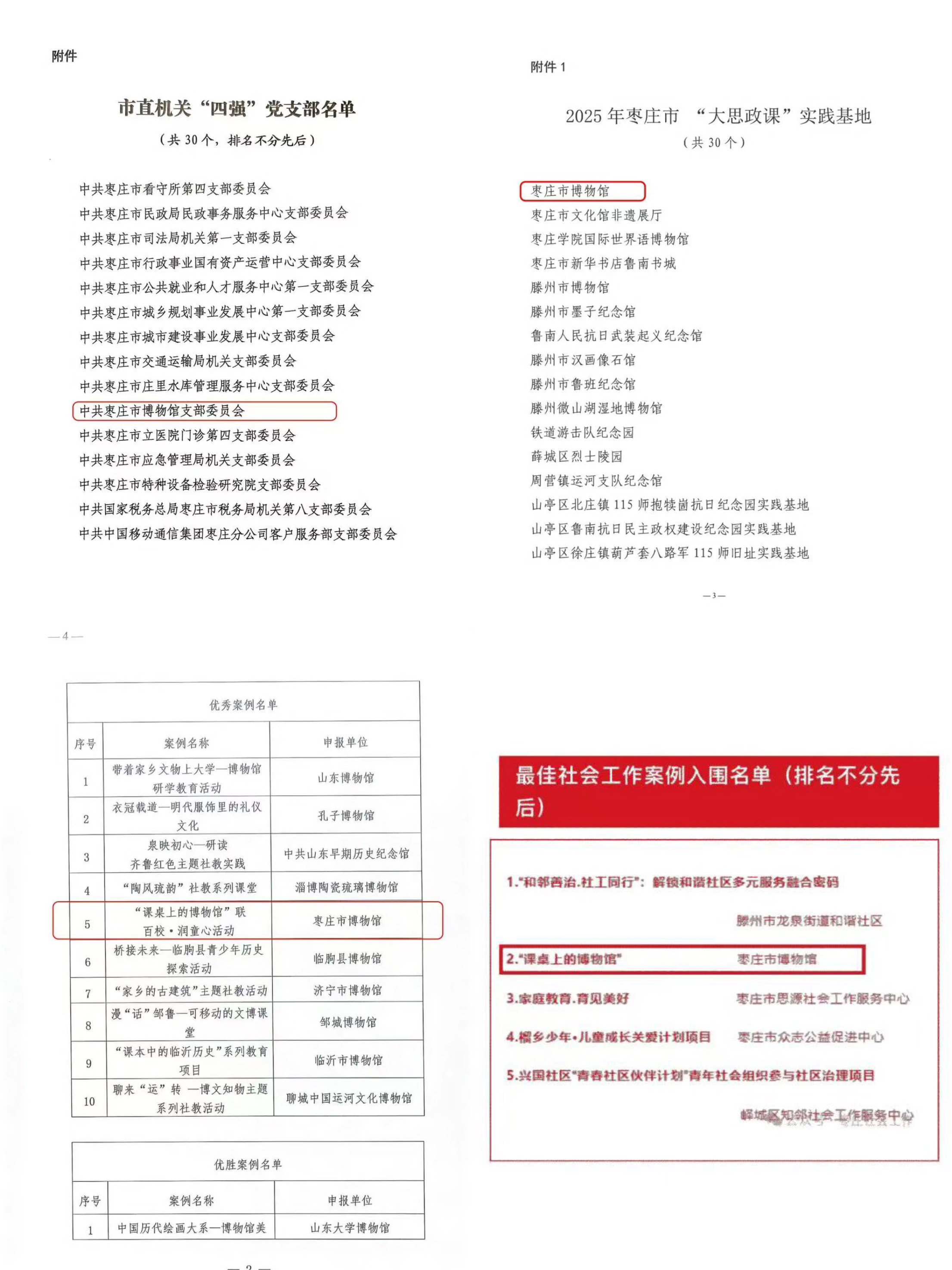 课桌上的博物馆”荣获首批市级志愿服务示范项目库入库项目、枣庄市最佳社会工作案例、第六届全省博物馆社会教育优秀案例,为全市人民搭建起一座文化的桥梁,让更多的人能够近距离感受文化的魅力,共享文化发展的成果。