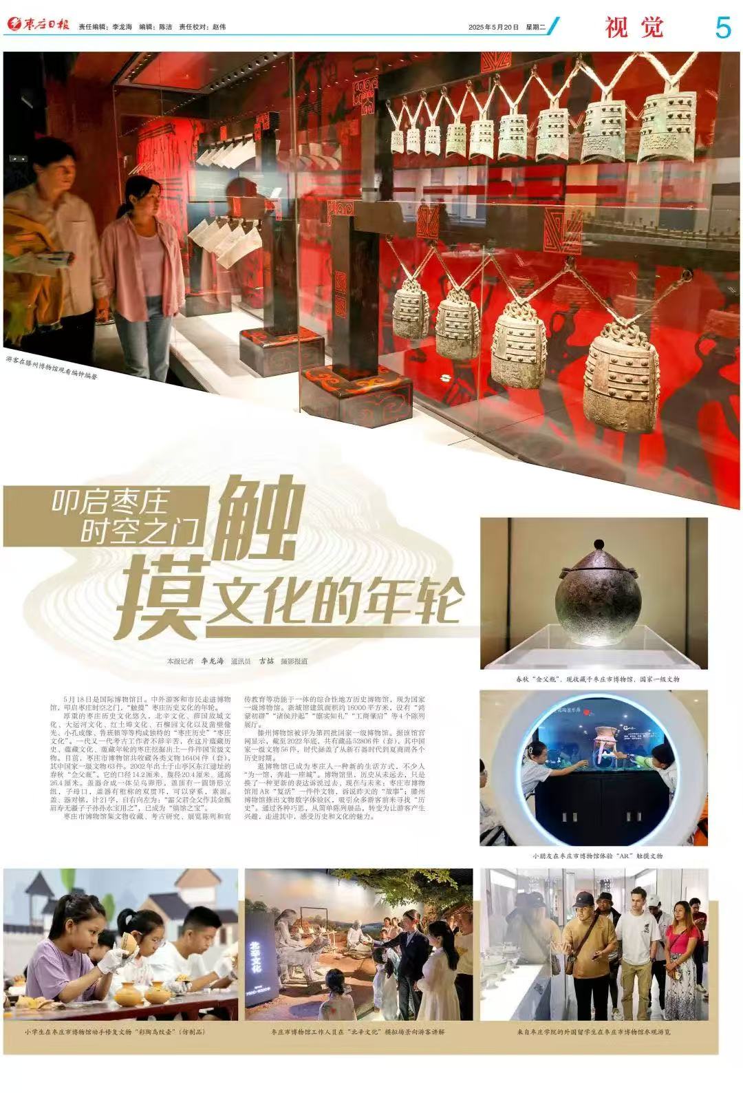 上半年,枣庄市博物馆坚持以习近平新时代中国特色社会主义思想为指导,深入学习贯彻党的二十大和二十届二中、三中全会精神,在市文旅局党组和文旅中心党委的坚强领导下,紧紧围绕年度重点工作任务,持续在文化服务质量提升上下功夫,展陈质量持续提高,社教活动类型不断丰富,文化服务形式更加多样,文物安全工作更加坚实,服务观众22.6万人次。我馆被评为枣庄市“大思政课”实践基地,枣庄市博物馆党支部被评为市直机关“四强”党支部,“联百校·润童心”课桌上的博物馆荣获首批市级志愿服务示范项目库入库项目、枣庄市最佳社会工作案例、第六届全省博物馆社会教育优秀案例,谱写文旅高质量发展新篇章。