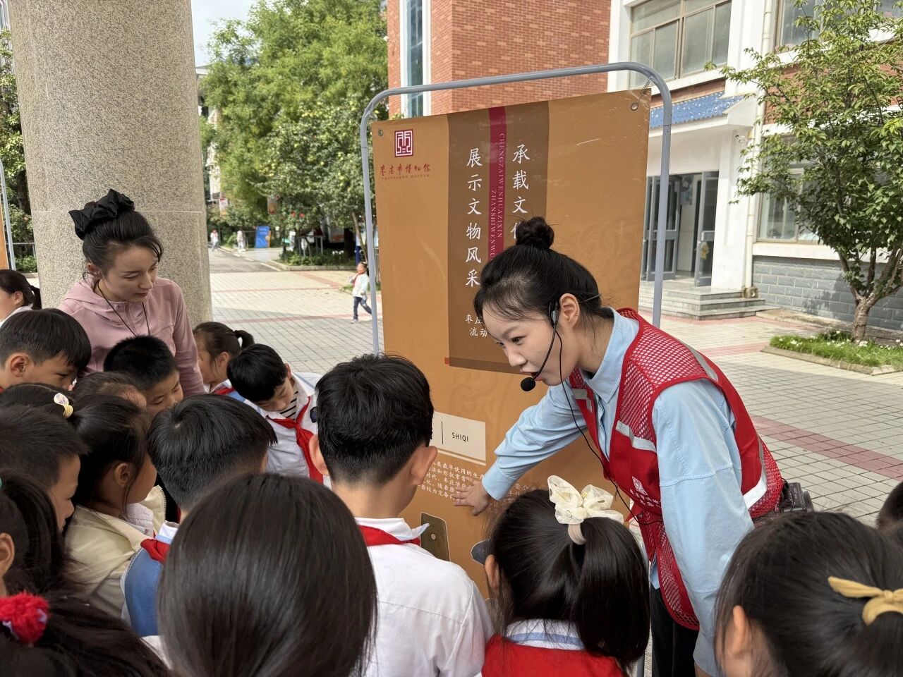 此外,枣庄市博物馆还在校内布设了非遗主题流动展板,通过图文结合的形式,讲解员围绕展板内容,为同学们补充讲解枣庄本地文化故事,引导大家从传统工艺中探寻家乡文化与中华优秀传统文化的紧密联系,进一步增强文化认同感与自豪感。