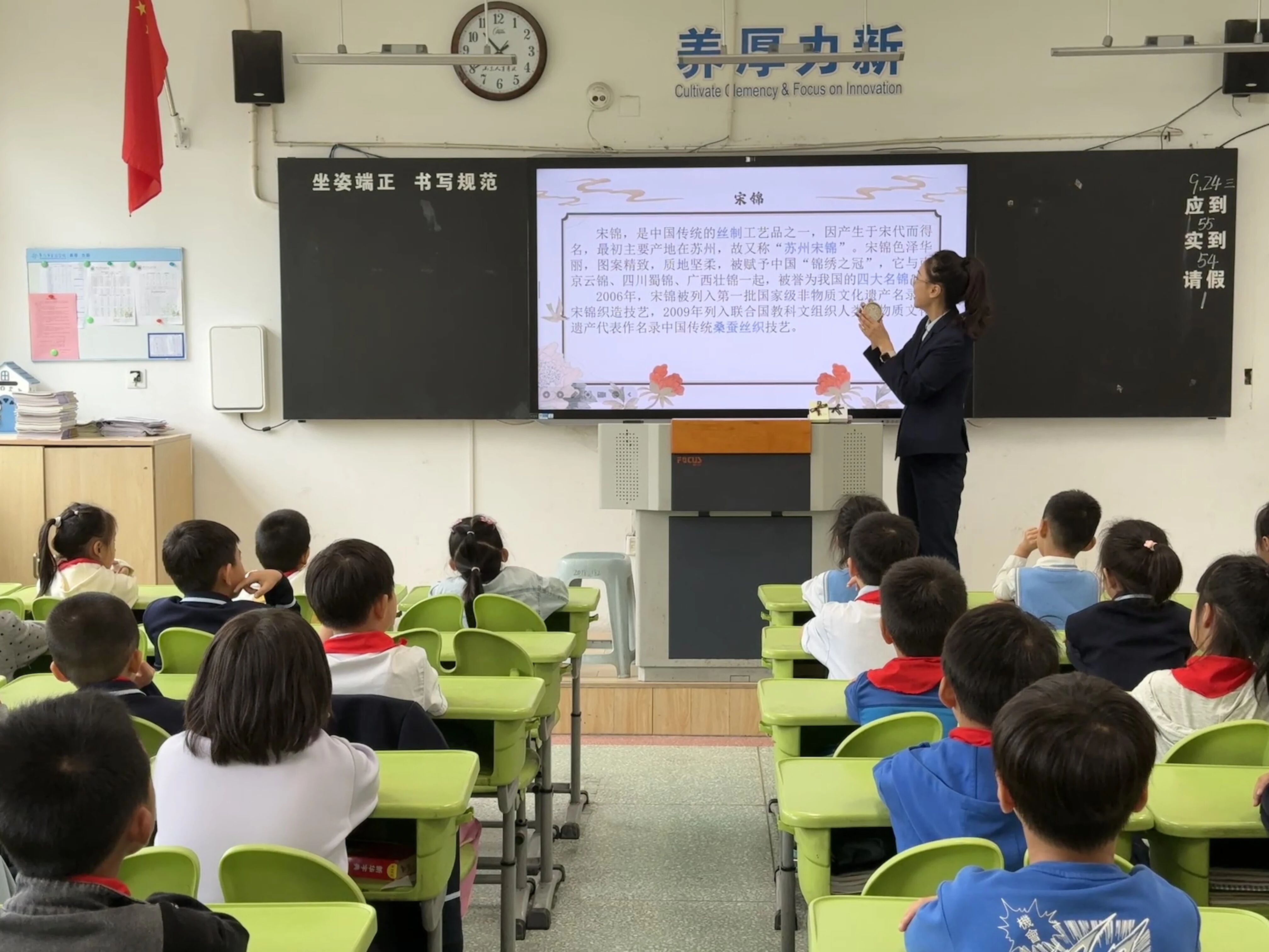 9月24日,枣庄市博物馆精心策划的 “联百校 润童心” 课桌上的博物馆活动走进枣庄市实验学校。这场以 “非遗手作” 为核心的文化盛宴,通过知识讲解与手工实践相结合的形式,带领二年级七班的同学们解锁宋锦、苗银的美学密码,在指尖创作中传承文化根脉。