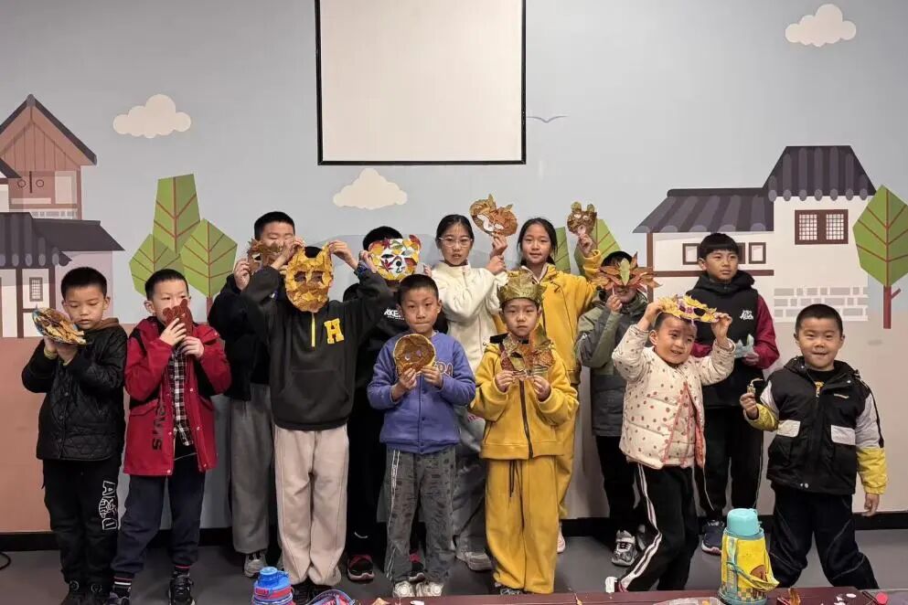 手工制作环节,同学们拿起铅笔在卡纸上描绘出面具轮廓,让彩笔、秋叶点缀面具。当同学们戴上自己制作的秋叶面具相互展示时,一张张创意满满的面具不仅展现着大家的巧思,更定格了青少年对秋日的喜爱与对传统手工的热忱。